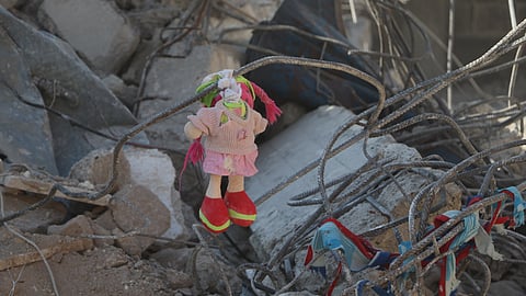 في هذه الصورة التي نشرتها منظمة "الخوذ البيضاء" على حسابها في "تويتر"، نشاهد دمية طفلة سورية متدلية بين أنقاض المنازل والمباني التي سقطت ودمرت إثر الزلزال المدمر الذي ضرب المنطقة.