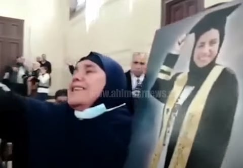 بدموع الحسرة والألم، صرخت والدة "فتاة المول" في مصر، أثناء جلسة محاكمة المتهمين بقتلها داخل عيادة طبيب في مول شهير، خلال نظر القضية ومناقشة تقرير مستشفى الأمراض العقلية والعصبية للمتهمة الأولى ومتهم آخر.