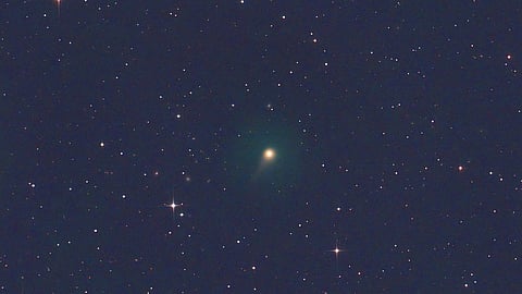 ويمكن تمييز المذنب عن النجوم بالغلاف الأخضر الذي يبدو منبعثاً عنه، وهو عبارة عن غاز يُطلق عنه عند اقترابه من الشمس.