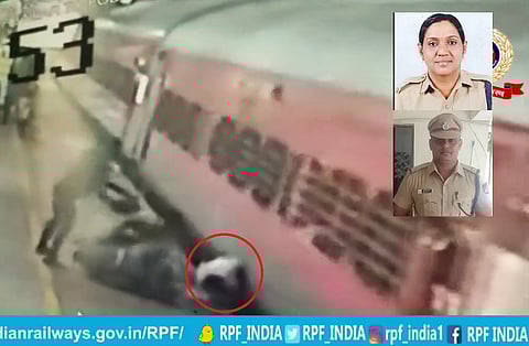وثّق مقطع فيديو شجاعة ضابطين في قوة حماية السكك الحديدية الهندية، بعدما نجحا في إنقاذ شخص من موت محتم أمام قطار متحرك.