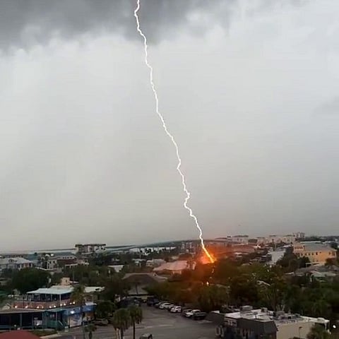 ويظهر في الفيديو الذي يبدو أنه مُصَوّر من نافذة، عواصفَ رعدية ومشاهد برق يضرب الأجواء.
