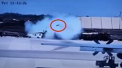 ويظهر شريط الفيديو المروع، كيف انطلق الصاروخ فجأة من خلف المقاتلة، ليخترق خزان وقود، ثم يصطدم بطائرة نقل فرنسية من طراز "هيركيوليز سي – 130"، لينحرف الصاروخ بقوة ويتوجّه نحو منزل الجنرال محمد صلاح إبراهيم؛ نائب قائد الحرس، فيقتل 5 أشخاص؛ بينهم 3 أطفال، ويصيب 4 آخرين، ولم يصب الجنرال "إبراهيم" في الحادث، حسب الصحيفة.