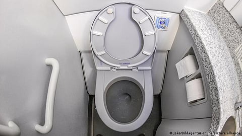 أثناء رحلة الطيران يذهب كثير من الناس إلى المرحاض؛ لكنهم لا يغسلون بالضرورة أيديهم بعدها، ثم يلمسون الأشياء بأيدٍ غير مغسولة، مثل زر خزان مياه تنظيف المرحاض، الذي يضغط الشخص عليه بعد استعمال الحمام. هذا الزر يكون مرتعًا للبكتريا، ولا يجب لمسه بأيد عارية، ويجب الضغط عليه بمنديل أو قفازات يمكن التخلص منها.