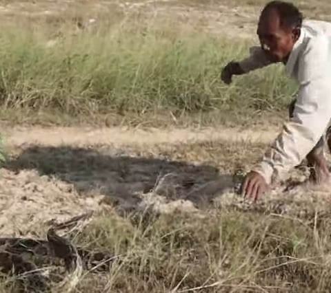 تداولت منصات التواصل الاجتماعي مقطع فيديو يظهر رجلاً هندياً يحاول الإمساك بثعبان ضخم في حقل أرز في إحدى مدن جنوب الهند.