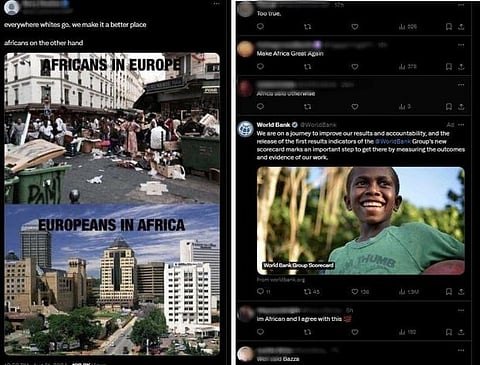 وتمّ رصد حساب موثق على المنصة يتابعه أكثر من 115 ألف شخص، نشر صورة عنصرية مع منشور يشيد بالاستعمار الأوروبي لأفريقيا.
