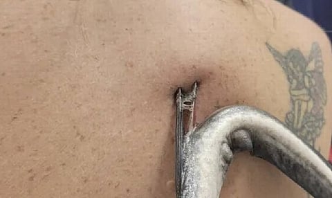 كشفت صور مرعبة عن تعرض امرأة أمريكية لطعنة في الظهر من شوكة ذيل سمكة الراي اللساع، وذلك أثناء قيامها بالغوص في مياه ضحلة بولاية فلوريدا.