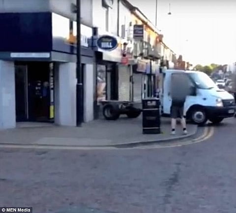شجّع حشد من المارة سائق شاحنة على تحطيم واجهة زجاجية لمطعم وجبات سريعة، حسب صحيفة "الديلى ميل" البريطانية.