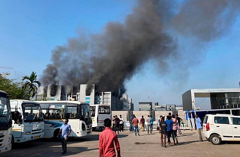 وظهرت في لقطات بثتها القنوات التلفزيونية الهندية سحابة ضخمة من الدخان الرمادي فوق موقع المعهد سيروم في بوني
