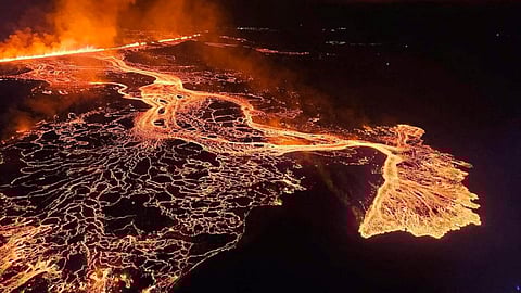 مرة أخرى ثار بركان شبه جزيرة ريكيانيس جنوب غرب أيسلندا ناثراً حممه اللاهبة، وأدخنته وأبخرته السامة، إذ تدفقت اللافا البركانية في مسارات في مشاهد حبست الأنفاس.