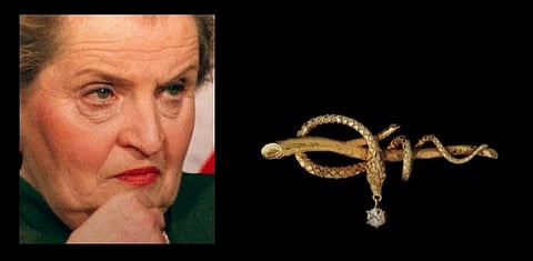 وبدأت دبلوماسية الدبابيس بقصة "دبوس الأفعى الشهير" الذي ارتدته أولبرايت لمواجهة الزعيم العراقي الراحل صدام حسين.