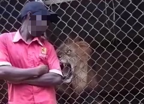 ويظهر الفيديو المروع، كيف أدخل الحارس يده، وداعب لبدة الأسد وفمه، وبعدها تمادى قليلا وهو ينظر نحو الزوار الذين كانوا يلتقطون المشهد، فراح يضع أصابعه بين أنياب الأسد، وفجأة غدره الوحش فأغلق أنيابه على أصبع الرجل، الذي ضربه الألم والذهول، ووضع قدمه محاولا تخليص إصبعه من بين الأنياب القاتلة، وتمكن من ذلك في النهاية، ثم سقط أرضا والدماء تنزف من يده.