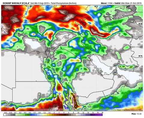 ويُتوقَّع أن ينتهي فصل الخريف بأمطار قريبة من معدلاتها العامة في مختلف المناطق، وذلك يعني ارتفاع فرص تشكُّل السيول في مناطق مختلفة من الجزيرة العربية، بما فيها السعودية والعراق والكويت، وحدوث ما يعرف بـ"الكسير" على سواحل البحر الأحمر. كم أنه من المتوقع أن يكون فصل الخريف معتدل الحرارة بوجه عام، يتخلله بعض الفترات الباردة، ولاسيما في نوفمبر.