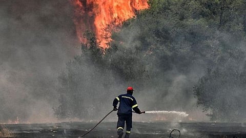 وحذر المتحدث باسم فرق الإطفاء فاسيليس فاثراكويانيس من أن الرياح تؤجج الحريق.