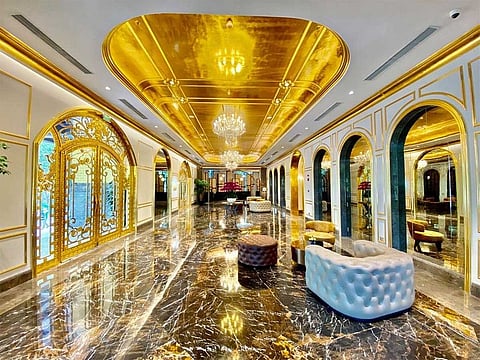 ويضم الفندق لوبيًا مطليًا بالذهب، وكذلك أثاثًا مطليًا بالذهب، ومغسلة، وحوض استحمام، فضلاً عن سلسلة من الزينة والإكسسوارات المغطاة بالذهب، وفناجين وأطباق مُذهَّبة علاوة على أرضياته الذهبية.