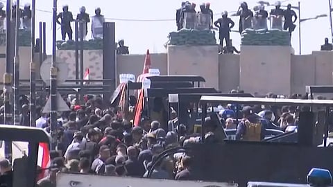 وشوهد أنصار الصدر وهم يلوحون بالأعلام بينما تتجمع قوات الأمن حولهم.
