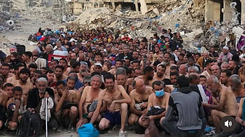 وتظهر صورة حشد كبير يضم أكثر من 200 فلسطيني، منحنين وسط أنقاض جباليا في شمال غزة، ومعظمهم من الرجال، وكثير منهم شبه عراة، وبعضهم مسنون، وبعضهم مصابون بشكل واضح، وهناك طفل واحد على الأقل بينهم.