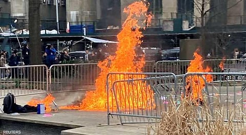 توفّي رجل سكب على نفسه مادة مشتعلة وأضرم النار في نفسه أمام المحكمة التي يُحاكَم فيها الرئيس السابق دونالد ترامب؛ حسبما ذكر بيان الشرطة.
