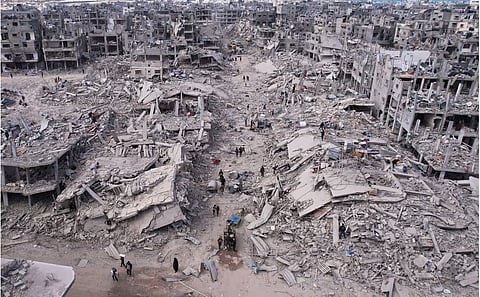 ودمرت الحرب قطاع غزة، حيث نزح 90% من سكانه البالغ عددهم 2.3 مليون نسمة، وتحولت المناطق الحضرية إلى أنقاض. تسببت الأزمة الإنسانية في دفع مئات الآلاف نحو المجاعة، مع توقف خدمات حيوية مثل وحدة غسيل الكلى في مستشفى الشفاء بسبب نقص الوقود، وأسفر الصراع عن مقتل أكثر من 56 ألف شخص، معظمهم من النساء والأطفال، وفقًا لوزارة الصحة في غزة، التي لا تفرق بين المدنيين والمقاتلين.