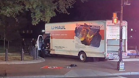 وعثر المحققون على علم يحمل شعارًا نازيًا (الصليب المعقوف)، داخل الشاحنة التي اصطدمت بالحواجز في ساحة لافاييت المجاورة لأرض البيت الأبيض مساء أمس.