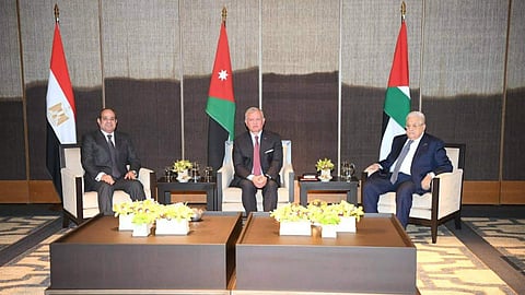 وجاء في بيان صادر عن الديوان الملكي إثر قمة جمعت القادة الثلاثة في العقبة جنوب عمان بعيدًا عن أعين الصحافيين، أن الزعماء الثلاثة أكدوا "ضرورة الاستمرار بالضغط لوقف العدوان الإسرائيلي على غزة، وحماية المدنيين العزل".