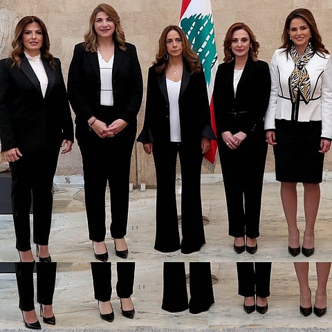 وقد أثير جدال واسع على مواقع التواصل حول صورة الوزيرات الست في الحكومة الجديدة، ولبنان، تداول ناشطون عبر مواقع التواصل في لبنان الصورة التذكارية للحكومة الجديدة، ليحظى حذاء وزير الاقتصاد والتجارة راوول نعمة باهتمام الناشطين الكبير.