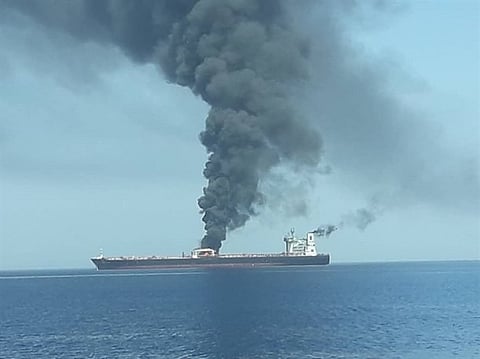وقال جوشوا فراي من الأسطول الخامس: "نحن على علم بأنباء الهجوم على ناقلتين في خليج عمان. تَلَقّت القوات البحرية الأمريكية في المنطقة نداءيْ استغاثة منفصلين في الساعة 6:12 صباحًا بالتوقيت المحلي وآخر في السابعة صباحًا".