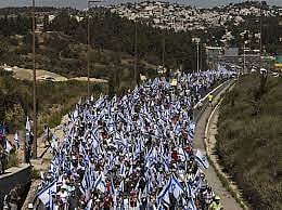خرج آلاف الإسرائيليين المحتجين على التعديلات القضائية، التي يسعى إليها رئيس الوزراء الإسرائيلي بنيامين نتنياهو، في مسيرة إلى القدس اليوم (السبت)، مع تصاعد الضغوط على الحكومة اليمينية لإلغاء مشروع قانونٍ من شأنه تقليص سلطات المحكمة العليا.