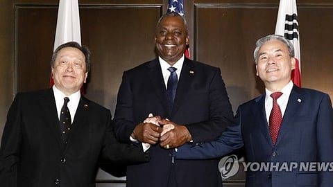 من جانبه، قال وزير دفاع كوريا الجنوبية لي جونج سوب، عقب الاجتماع الثلاثي في سنغافورة: "اتفقنا على رفع مستوى التعاون الأمني الثلاثي إلى مستوى أعلى مع تنفيذ الاتفاقات التي وردت في لقاءات القمة بين كوريا الجنوبية والولايات المتحدة واليابان بصورة إيجابية".