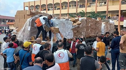 • السبت 21 أكتوبر الجاري دخلت أول دفعة مساعدات وكانت تشمل 20 شاحنة.