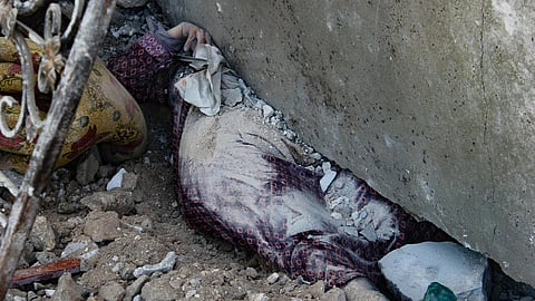 من جانبه، ذكر شاهد عيان أن متطوعين في منظمة الخوذ البيضاء (الدفاع المدني في مناطق سيطرة الفصائل المعارضة)؛ انتشلوا جثة امرأة عالقة تحت جدار إسمنتي.