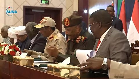ردد رئيس مجلس السيادة السوداني عبدالفتاح البرهان هتاف "العسكر للثكنات" خلال خطابه أثناء مراسم توقيع الاتفاق الإطاري للانتقال السياسي ونقل السلطة للمدنيين، اليوم (الاثنين)، بحسب ما أوردت "رويترز".