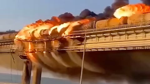 ويمثل الجسر الآن طريق إمداد مهماً للقوات الروسية التي سيطرت على معظم منطقة خيرسون بجنوب أوكرانيا.
