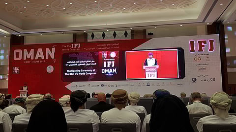 وقال رئيس جمعية الصحفيين العمانية الدكتور محمد بن مبارك العريمي، في كلمته: "إن استضافة سلطنة عمان للمؤتمر ينبع من الثقة، التي أولاها لها الاتحاد الدولي للصحفيين، كما ينبع من إرادة جمعية الصحفيين العمانية في توسيع رقعة التضامن الدولي بين الصحفيين حول العالم، وجعل عُمان مركزاً أساسياً لتطوير العمل الصحفي والنقابي في إطار الاتحاد الدولي للصحفيين".