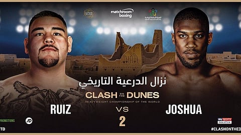 أعلنت اللجنة المنظمة لنزال الدرعية التاريخي لنهائي بطولة العالم للوزن الثقيل في الملاكمة، الذي سيجمع بين الملاكم أنثوني جوشوا ومنافسه أندي رويز جونيور، عن طرح تذاكر اللقاء الذي سيقام في يوم 7 ديسمبر 2019م على حلبة "ميدان الدرعية" والذي يتسع لـ 15 الف متفرج ، ضمن فعاليات موسم الدرعية، الذي سيقام خلال الفترة من 22 نوفمبر إلى 21 ديسمبر 2019 .