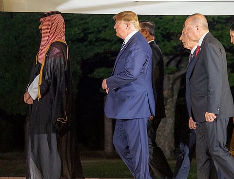 الصورة الأكثر إعجابًا والتي التُقطت مساء اليوم، ونشرها المصور بندر الجلعود، ظهَر فيها سمو ولي العهد يتقدم رؤساء عدد من الدول؛ حيث يسير خلفه الرئيس الأمريكي دونالد ترمب، وخلفه الرئيس التركي وعدد من رؤساء الدول.