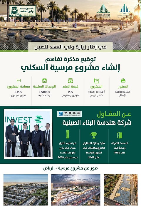 وقعت الشركة الوطنية للإسكان مذكرة تفاهم مع شركة هندسة البناء الصينية "شاينا كونستركشن"، وذلك خلال زيارة صاحب السمو الملكي الأمير محمد بن سلمان بن عبدالعزيز ولي العهد نائب رئيس مجلس الوزراء وزير الدفاع للصين.